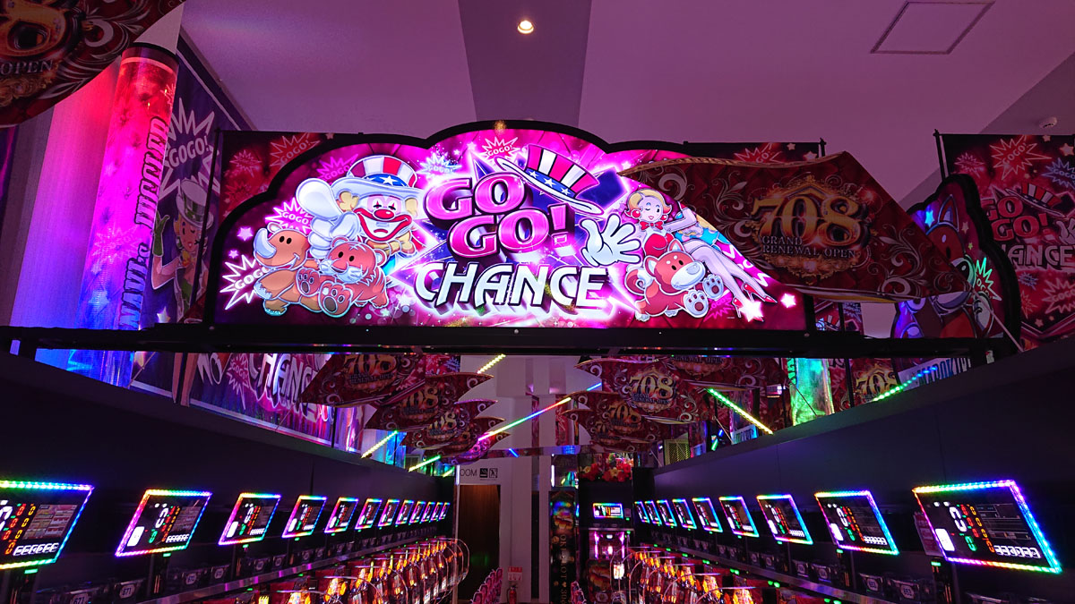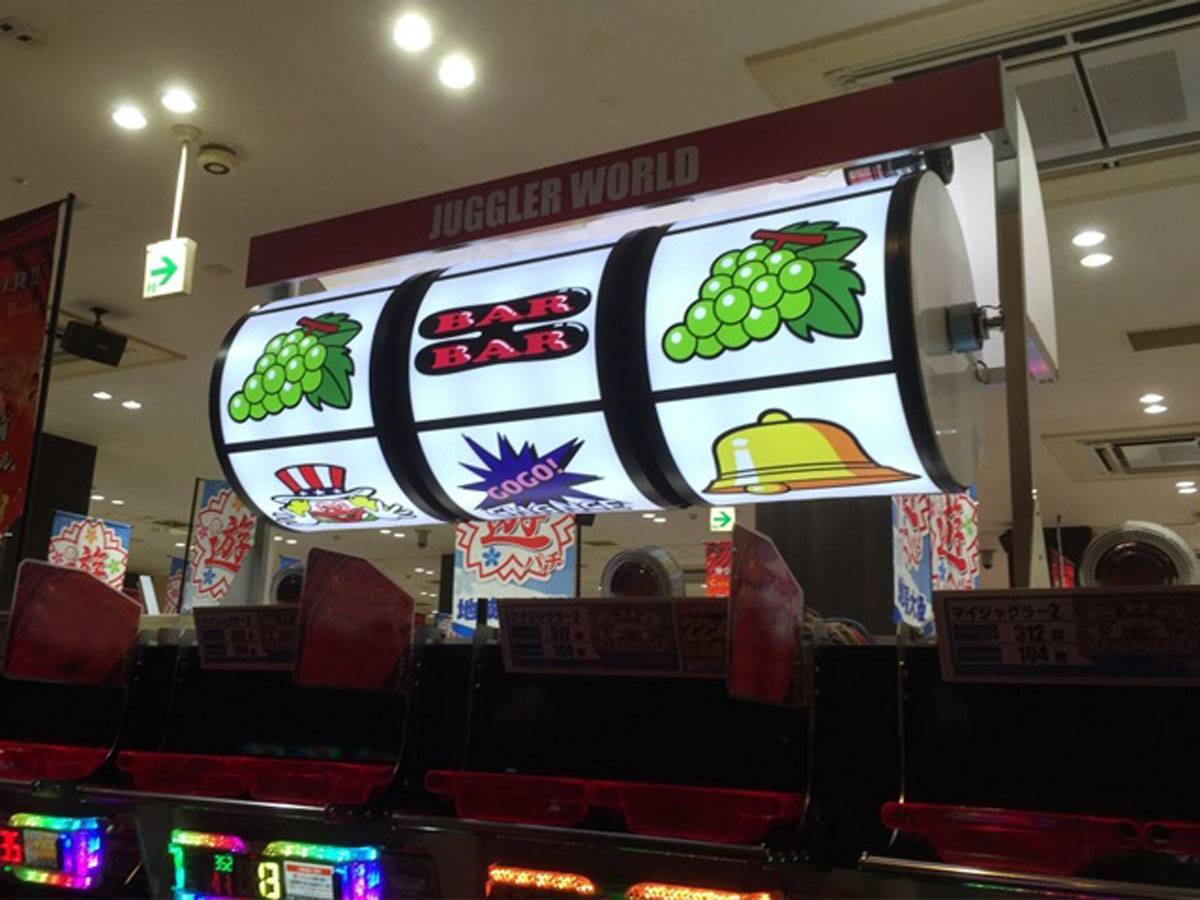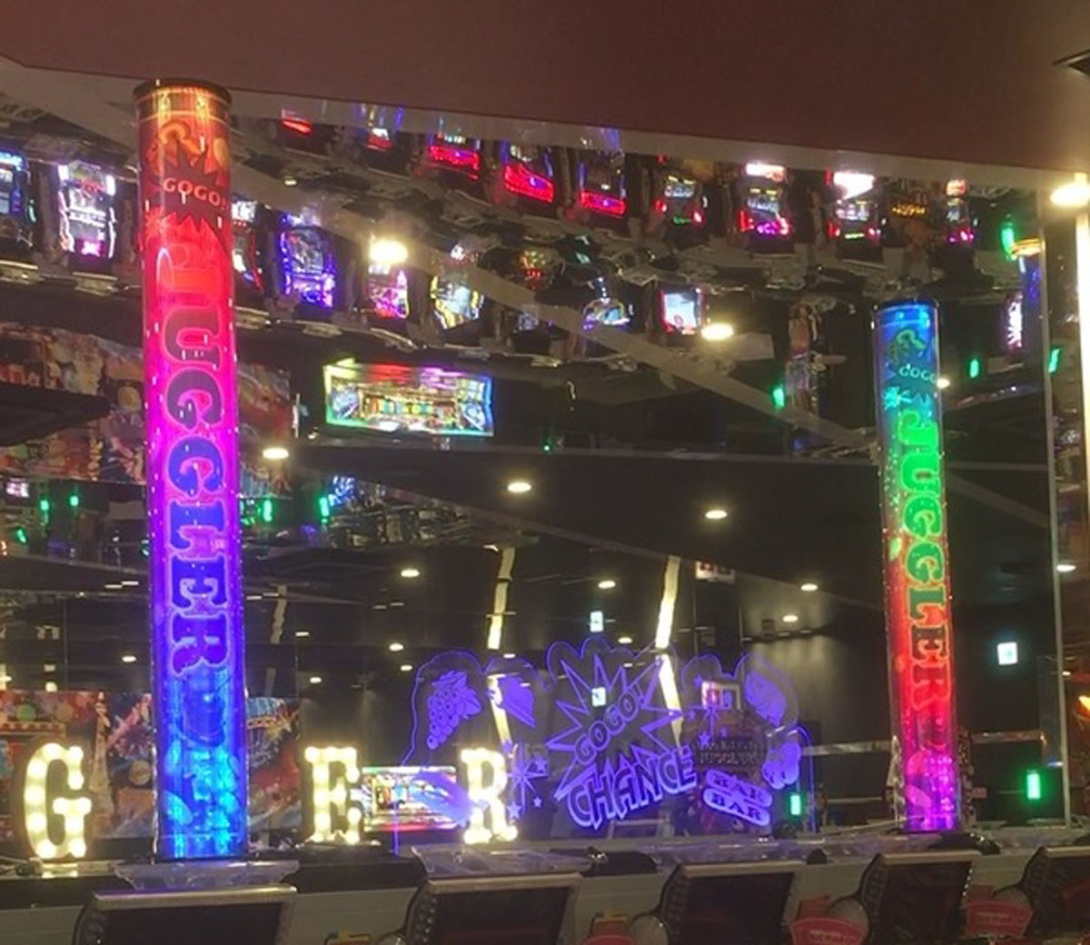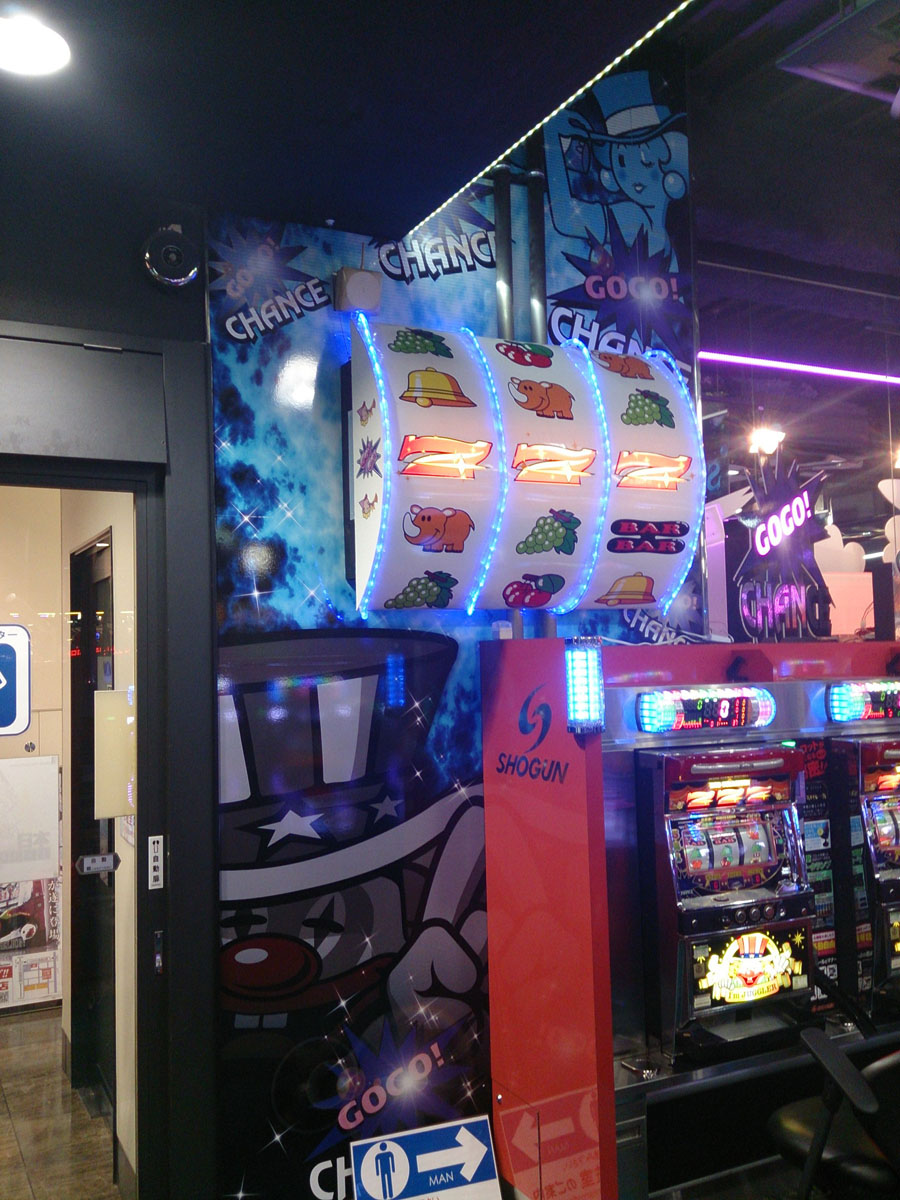 スロットコーナーの特性上、LED等を使用した光る装飾が人気です。