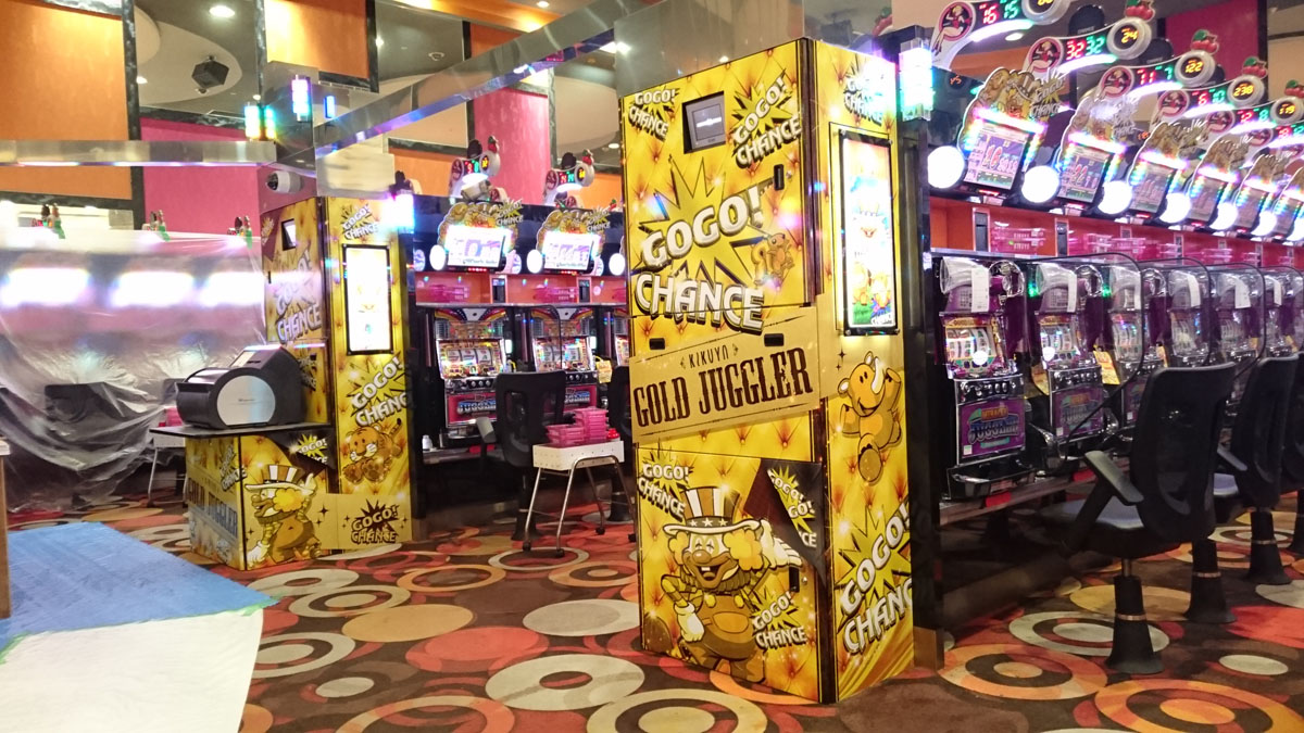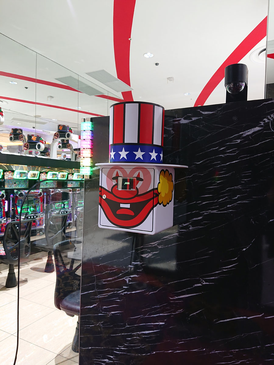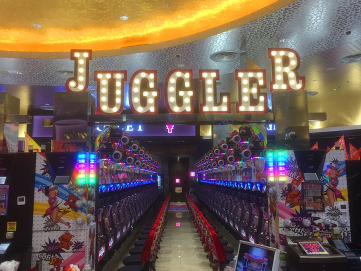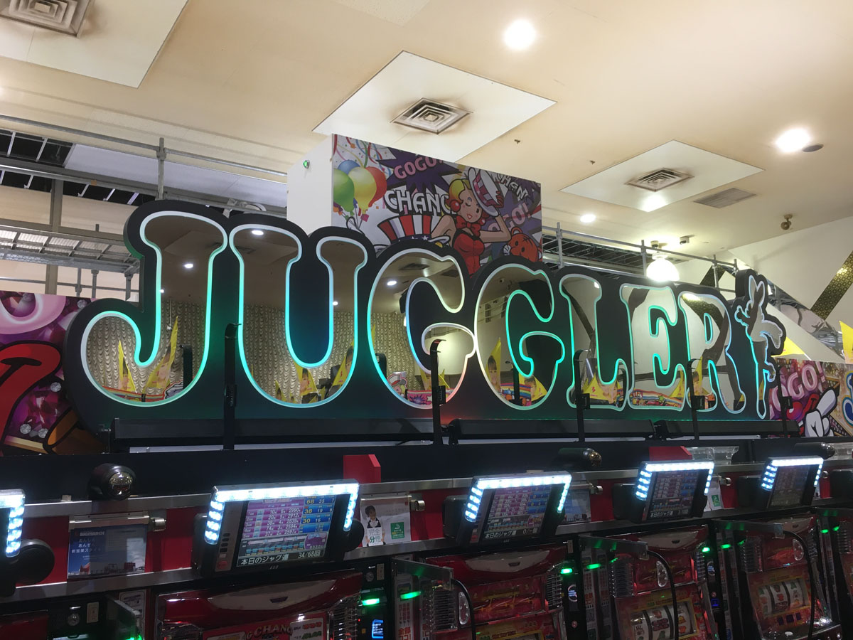 スロットコーナーの特性上、LED等を使用した光る装飾が人気です。