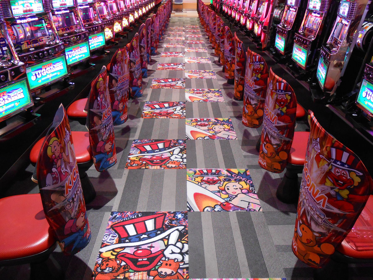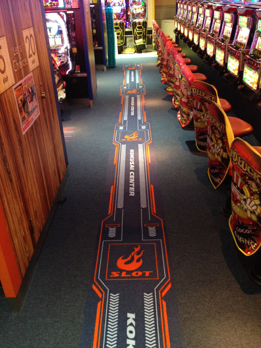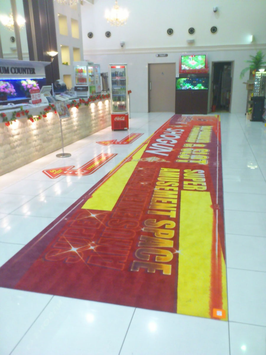タイルカーペットにダイレクトに印刷する事で、自由なデザインをほどこす事が可能になりました。